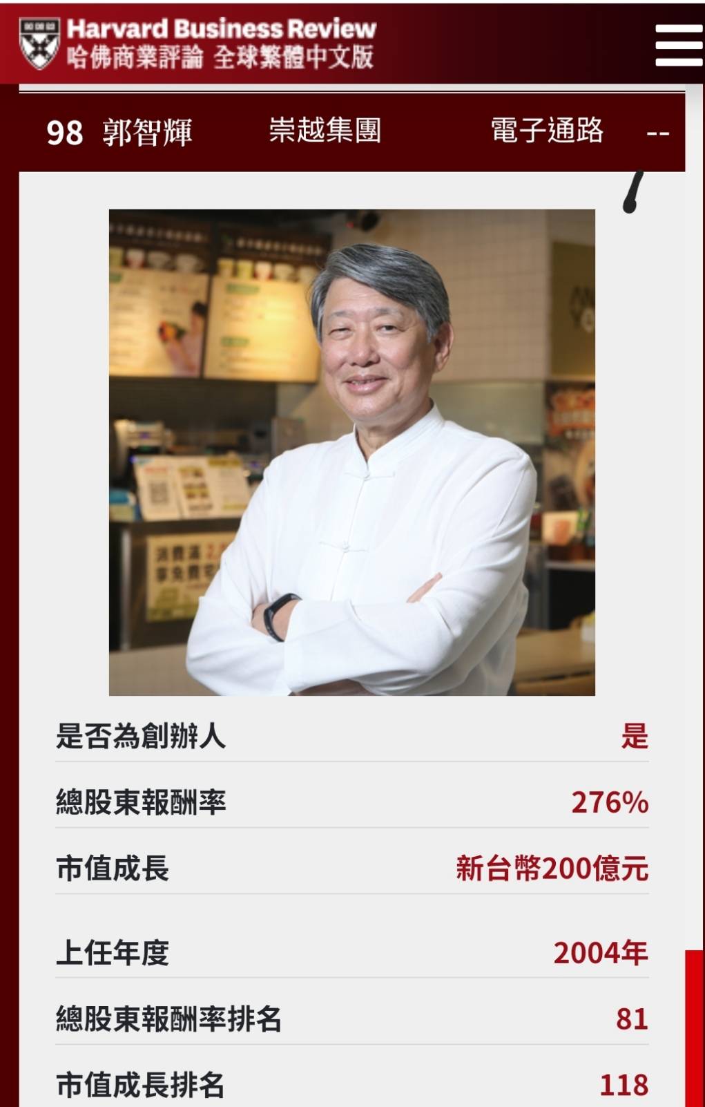 [狂賀]集團董事長 郭智輝博士,名列台灣CEO 100強