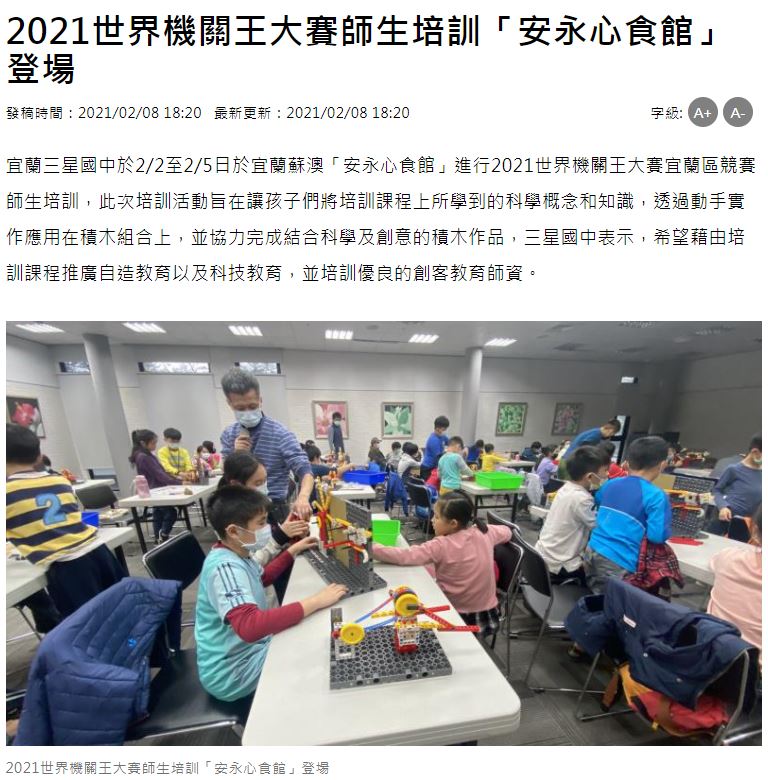 [媒體報導]2021世界機關王大賽師生培訓安永心食館登場