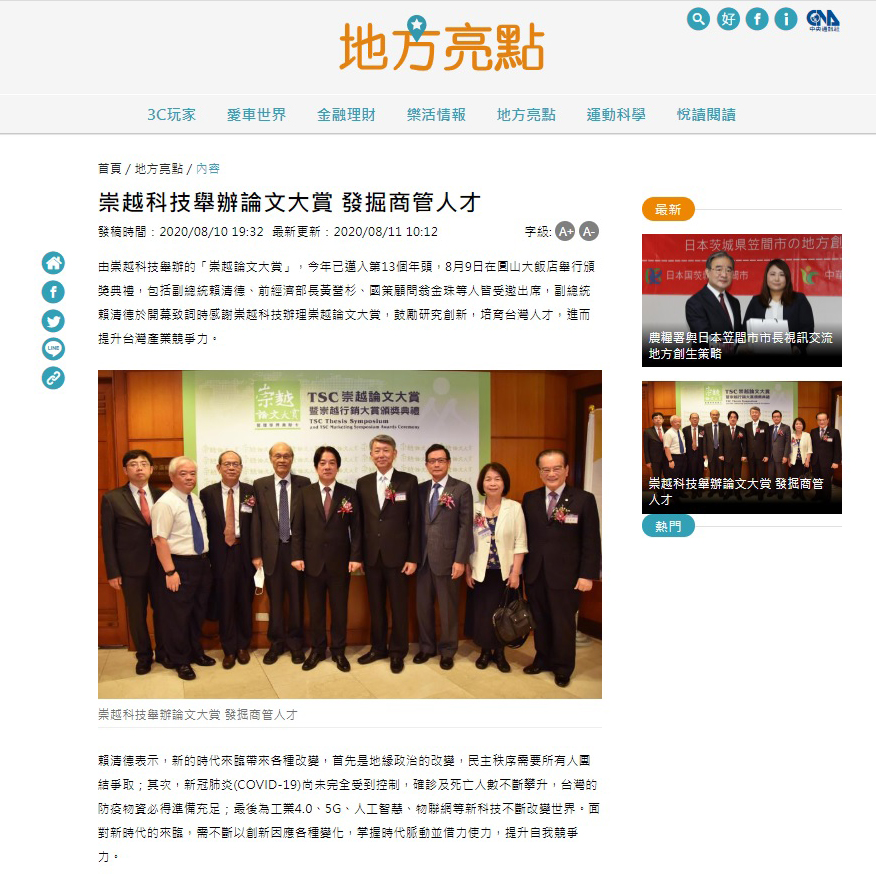 [媒體報導]崇越科技舉辦論文大賞 發掘商管人才